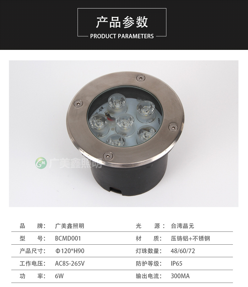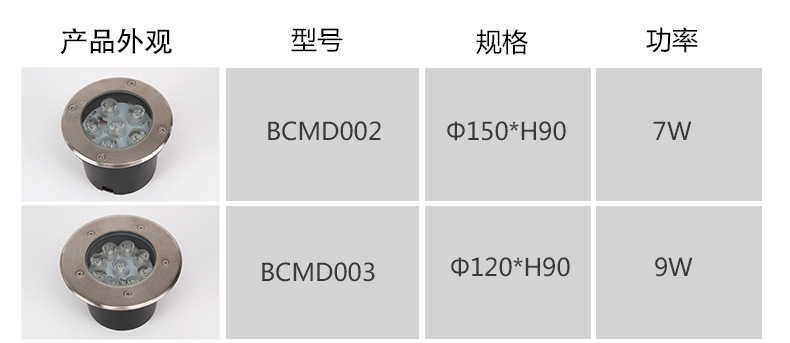 Model | BCMD001 | Types of | Square buried light | Protection level | IP65 |