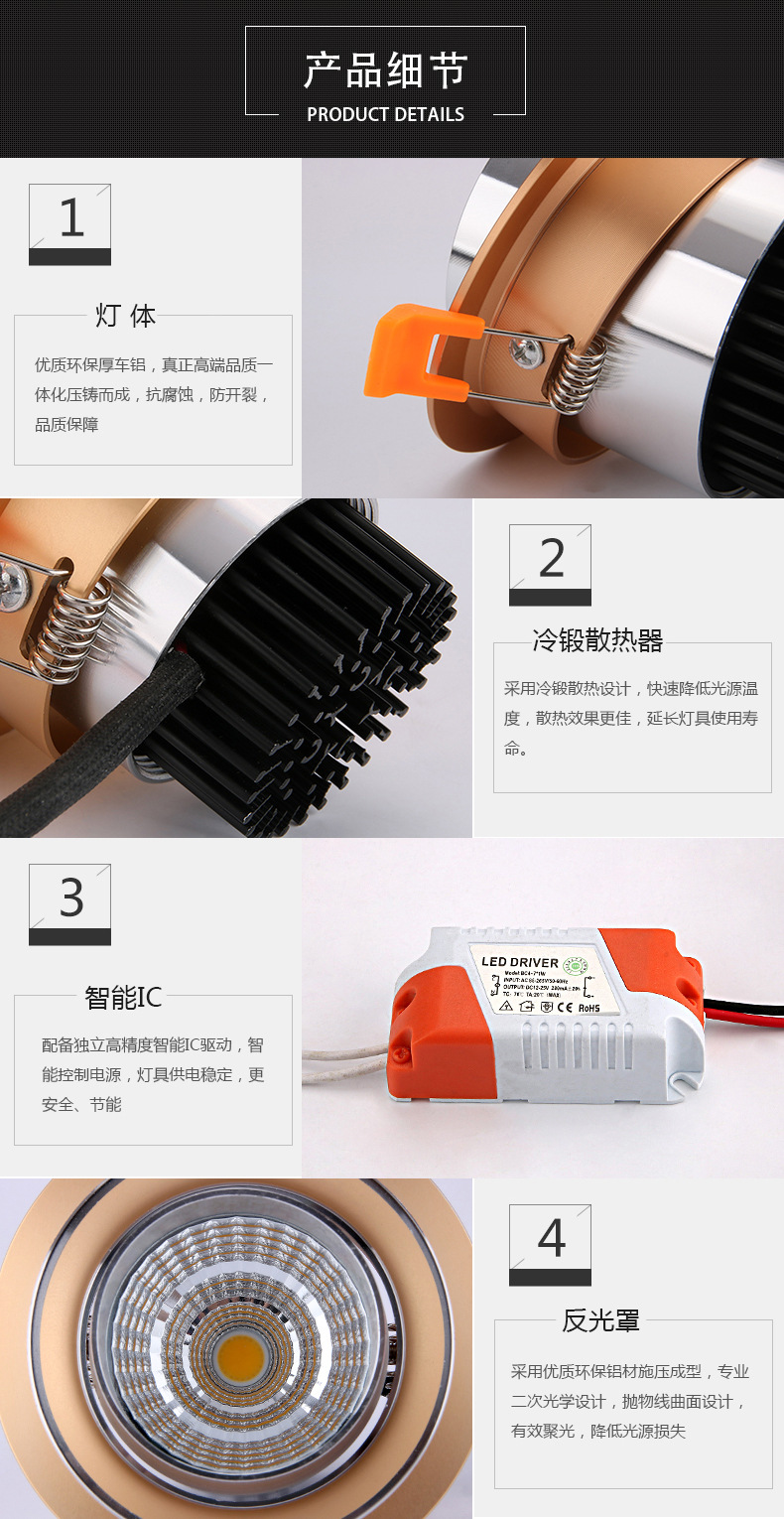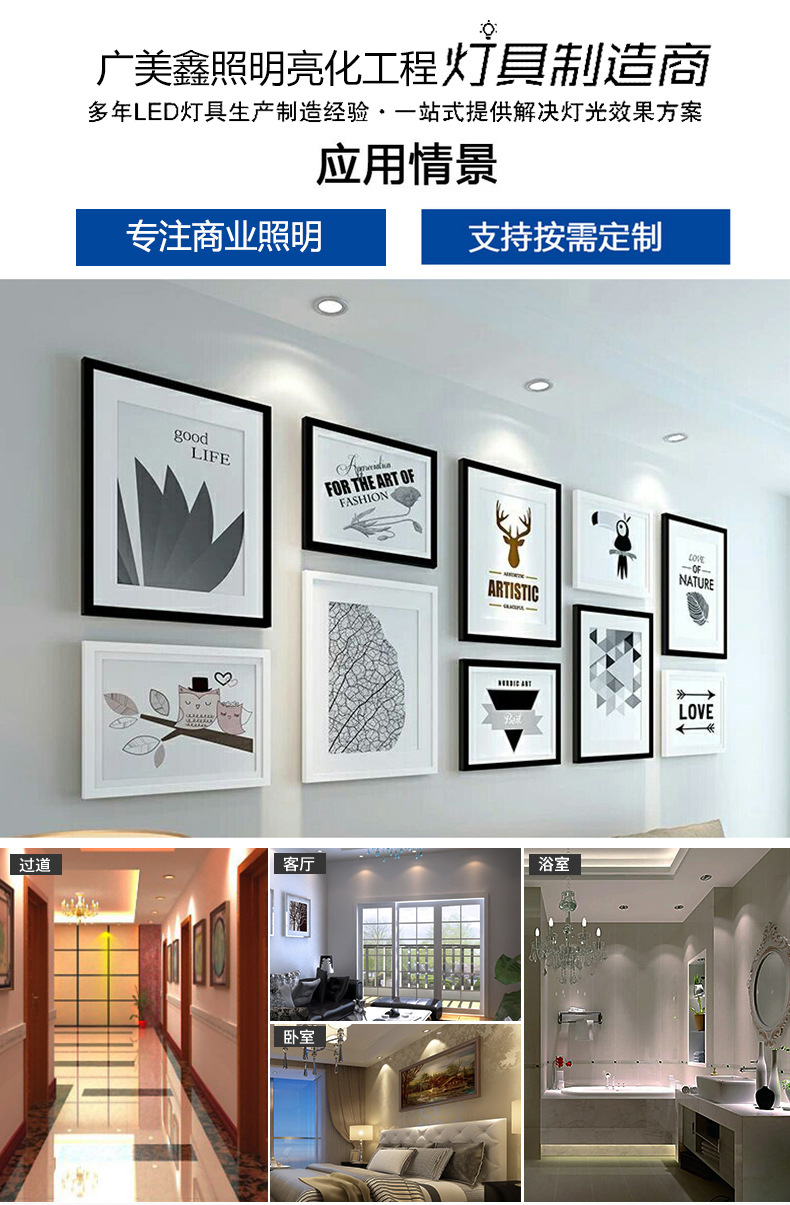 發(fā)光角度 | 30/60(度) | 封裝工藝 | COB | 用途范圍 | 家居、商場、辦公、寫字樓、餐廳、酒吧、酒店等 |